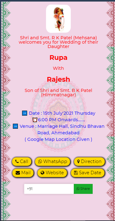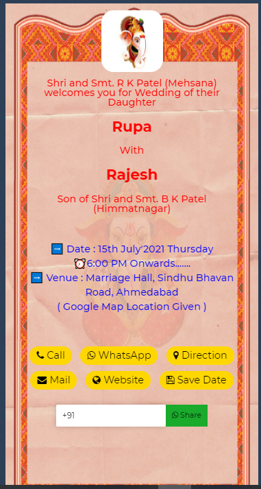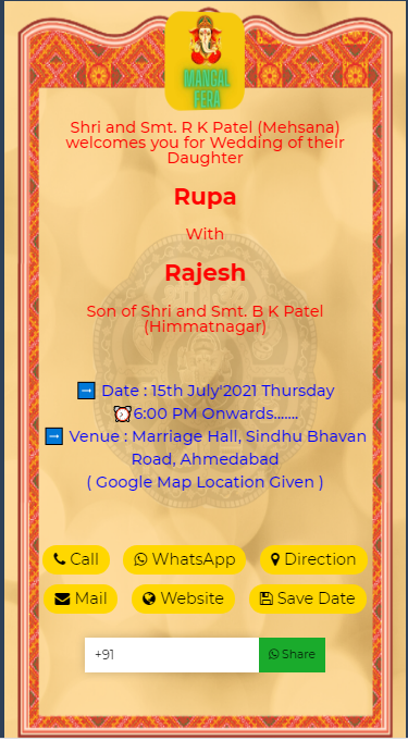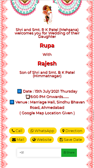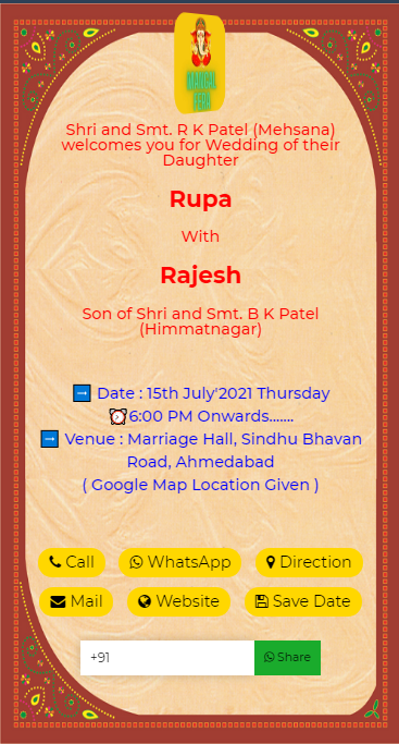 Single Click Call, Whatsapp, Venue Navigation, Save Date